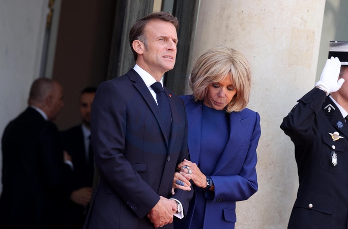 Emmanuel Macron et sa femme Brigitte - Le président des Etats-Unis et sa femme à leur arrivée au palais de l'Elysée à Paris, à l'occasion de leur visite d'état en France. Le 8 juin 2024 © Jacovides-Moreau / Bestimage The President of the United States and his wife arrive at the Elysée Palace in Paris on their state visit to France. June 8, 2024