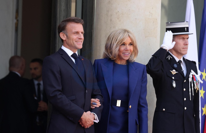 Emmanuel Macron et sa femme Brigitte - Le président des Etats-Unis et sa femme à leur arrivée au palais de l'Elysée à Paris, à l'occasion de leur visite d'état en France. Le 8 juin 2024 © Jacovides-Moreau / Bestimage The President of the United States and his wife arrive at the Elysée Palace in Paris on their state visit to France. June 8, 2024