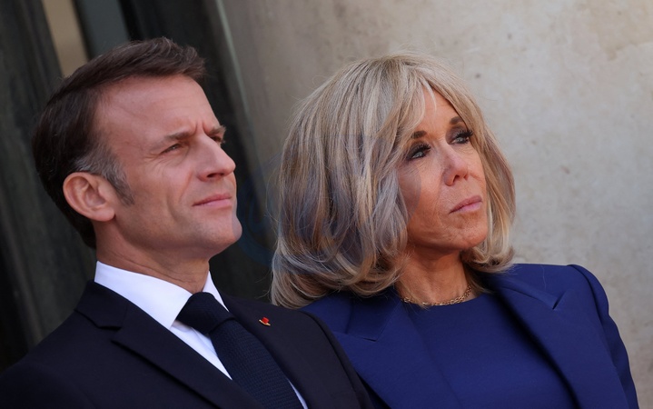 Emmanuel Macron et sa femme Brigitte - Le président des Etats-Unis et sa femme à leur arrivée au palais de l'Elysée à Paris, à l'occasion de leur visite d'état en France. Le 8 juin 2024 © Jacovides-Moreau / Bestimage The President of the United States and his wife arrive at the Elysée Palace in Paris on their state visit to France. June 8, 2024