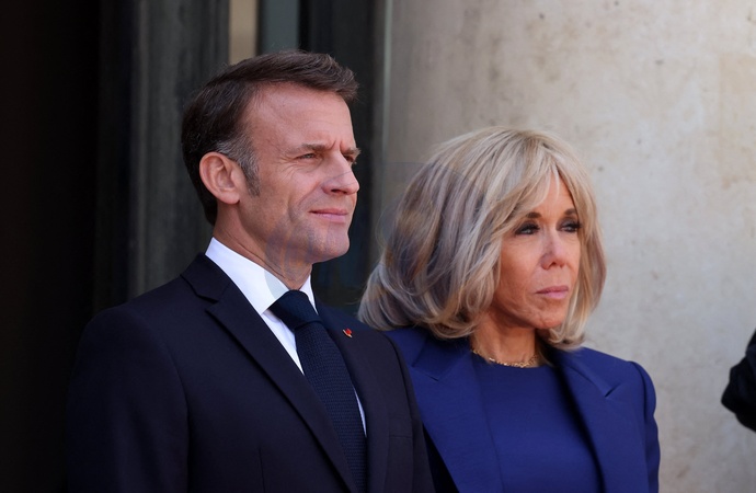 Emmanuel Macron et sa femme Brigitte - Le président des Etats-Unis et sa femme à leur arrivée au palais de l'Elysée à Paris, à l'occasion de leur visite d'état en France. Le 8 juin 2024 © Jacovides-Moreau / Bestimage The President of the United States and his wife arrive at the Elysée Palace in Paris on their state visit to France. June 8, 2024