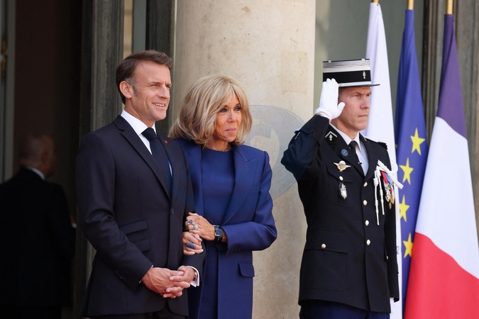 Emmanuel Macron et sa femme Brigitte - Le président des Etats-Unis et sa femme à leur arrivée au palais de l'Elysée à Paris, à l'occasion de leur visite d'état en France. Le 8 juin 2024 © Jacovides-Moreau / Bestimage The President of the United States and his wife arrive at the Elysée Palace in Paris on their state visit to France. June 8, 2024