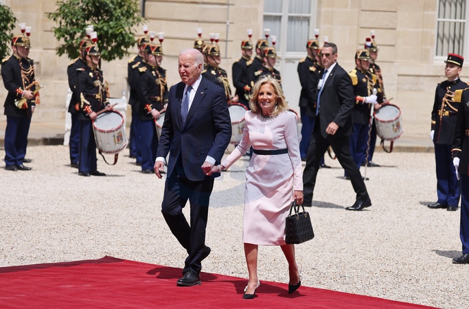 Joe Biden i jego żona Jill po przybyciu do Pałacu Elizejskiego w Paryżu z okazji wizyty państwowej we Francji