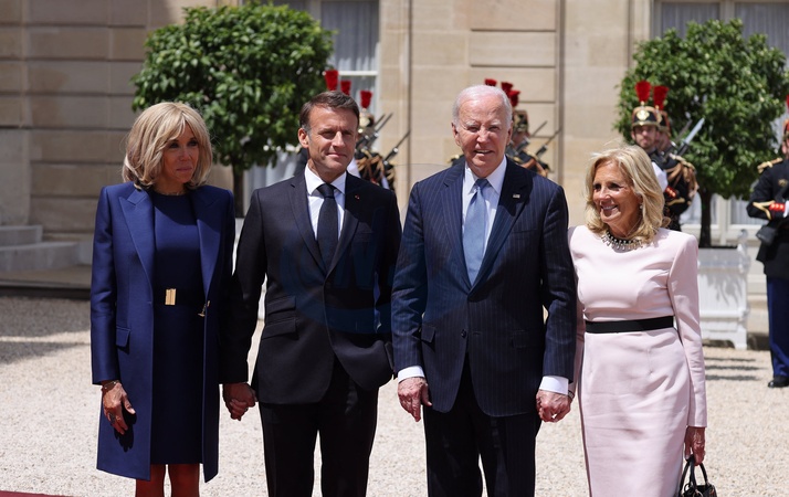 Joe Biden i jego żona Jill po przybyciu do Pałacu Elizejskiego w Paryżu z okazji wizyty państwowej we Francji