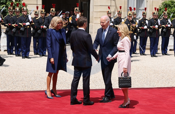 Joe Biden i jego żona Jill po przybyciu do Pałacu Elizejskiego w Paryżu z okazji wizyty państwowej we Francji