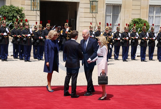 Joe Biden i jego żona Jill po przybyciu do Pałacu Elizejskiego w Paryżu z okazji wizyty państwowej we Francji