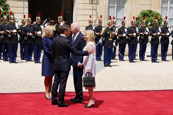 Joe Biden i jego żona Jill po przybyciu do Pałacu Elizejskiego w Paryżu z okazji wizyty państwowej we Francji