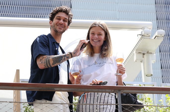 Constance Jablonski et son mari Matthias Dandois - Célébrités dans les tribunes des Internationaux de France de tennis de Roland Garros 2024 à Paris le 7 juin 2024. © Jacovides-Moreau/Bestimage Celebrities in the stands of the 2024 Roland Garros French Open tennis tournament in Paris on June 7, 2024.