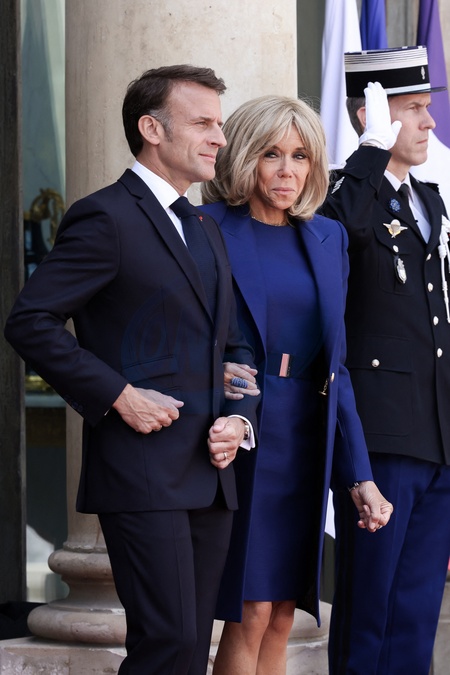 Le président français Emmanuel Macron et la première dame, Brigitte Macron accueillent le président américain et sa femme au palais de l'Elysee pour une visite d'état. Le 8 juin 2024. © Stéphane Lemouton / Bestimage The President of the United States and his wife arrive at the Elysée Palace in Paris on their state visit to France. June 8, 2024
