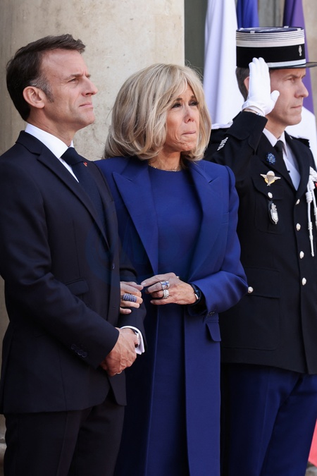 Le président français Emmanuel Macron et la première dame, Brigitte Macron accueillent le président américain et sa femme au palais de l'Elysee pour une visite d'état. Le 8 juin 2024. © Stéphane Lemouton / Bestimage The President of the United States and his wife arrive at the Elysée Palace in Paris on their state visit to France. June 8, 2024
