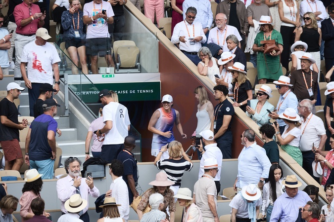 Remise du trophée à Iga Swiatek à l'issue de la finale Dames des Internationaux de Tennis de Roland Garros à Paris. Le 8 juin 2024 © Moreau-Jacovides / Bestimage Presentation of the trophy to Iga Swiatek at the end of the Ladies' final of the Roland Garros International Tennis Championships in Paris. On June 8, 2024