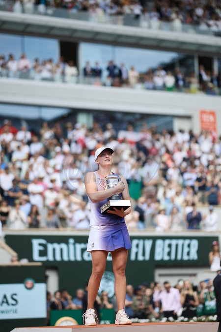 CM - Remise du trophée à Iga Swiatek à l'issue de la finale Dames des Internationaux de Tennis de Roland Garros à Paris