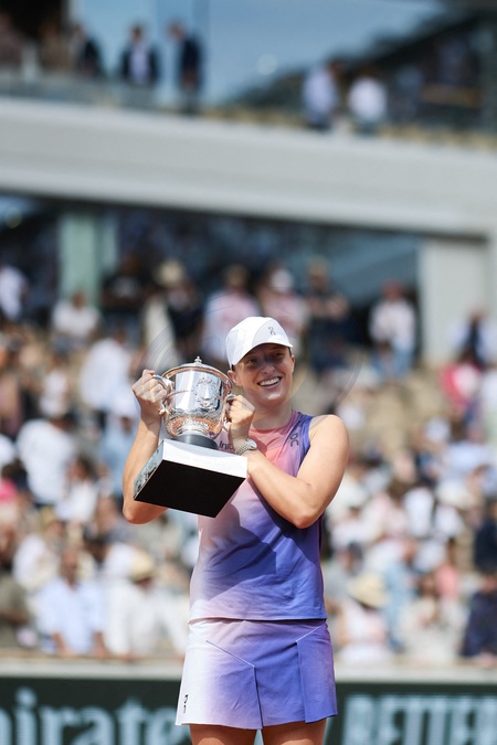 CM - Remise du trophée à Iga Swiatek à l'issue de la finale Dames des Internationaux de Tennis de Roland Garros à Paris