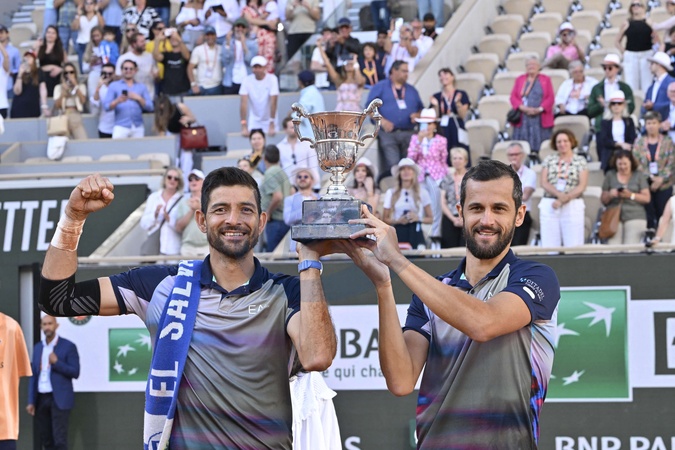 Marcelo Arevalo i Mate Pavic zwyciężają w finale gry podwójnej mężczyzn Międzynarodowych Mistrzostw Tenisowych Roland Garros przeciwko Simone Bolelli i Andrei Vavassori (7/5, 6/3) w Paryżu