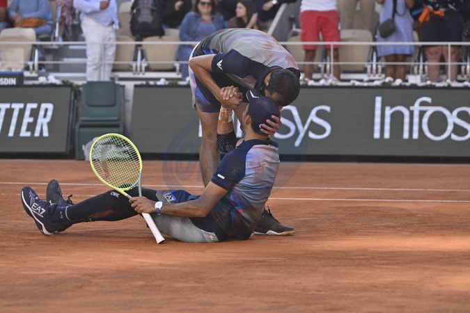 Marcelo Arevalo et Mate Pavic remportent la finale double messieurs des Internationaux de Tennis de Roland Garros face Simone Bolelli et Andrea Vavassori (7/5, 6/3) à Paris