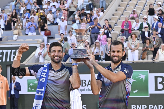 Marcelo Arevalo et Mate Pavic remportent la finale double messieurs des Internationaux de Tennis de Roland Garros face Simone Bolelli et Andrea Vavassori (7/5, 6/3) à Paris