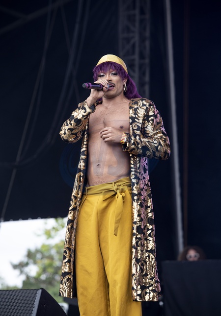 Rhys's Pieces hosting the main stage at Mighty Hoopla Festival, Brockwell Park, London on 01 June 2024Rhys' Pieces is a London-based queer performance artist, drag performer, and cabaret producer who has been making waves in the city's vibrant arts scene for the past 7 years. Born to mixed-race parents, RhyssPieces uses their art to explore issues of gender, sexuality, identity and race creating work that is both political and fun. As a drag performer, Rhys's Pieces is known for their innovative and medium-pushing work . Their performances are energetic and engaging, and often push the boundaries of what is considered acceptable or mainstream., Credit:Dafydd Owen / Avalon