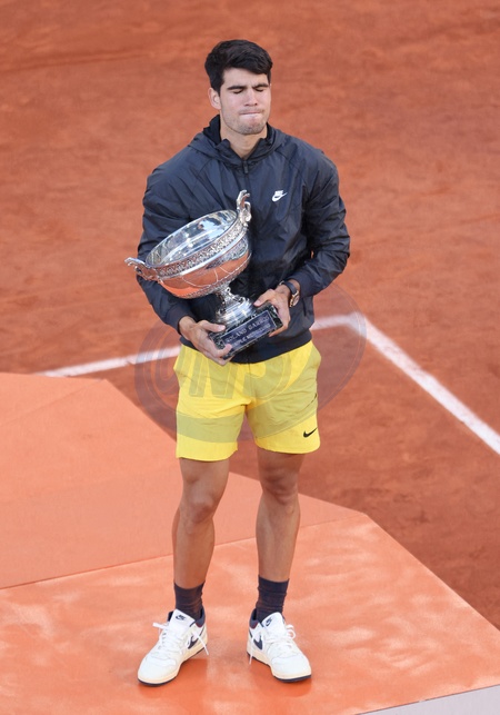 Carlos Alcaraz remporte les Internationaux de France de tennis de Roland Garros 2024 face à Alexander Zverev (6-3, 2-6, 5-7, 6-1, 6-2) à Paris le 9 Juin 2024. © Jacovides-Moreau/Bestimage Carlos Alcaraz wins the French Open tennis tournament at Roland Garros 2024 against Alexander Zverev (6-3, 2-6, 5-7, 6-1, 6-2) in Paris on June 9, 2024.