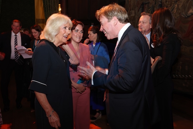 LONDON, ENGLAND - JUNE 08: Queen Camilla speaks with a guest at a reception at the Queen's reading room literary festival at Hampton Court Palace on June 08, 2024 in London, England., Credit:Chris Jackson / Avalon
