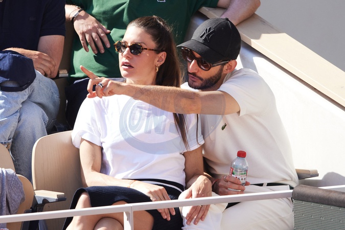 Pierre Niney et sa compagne Natasha Andrews - Célébrités dans les tribunes de la finale homme des Internationaux de France de tennis de Roland Garros 2024 à Paris le 9 juin 2024. © Jacovides-Moreau/Bestimage Celebrities in the stands of the men's final of the French Open tennis tournament at Roland Garros 2024 in Paris on June 9, 2024