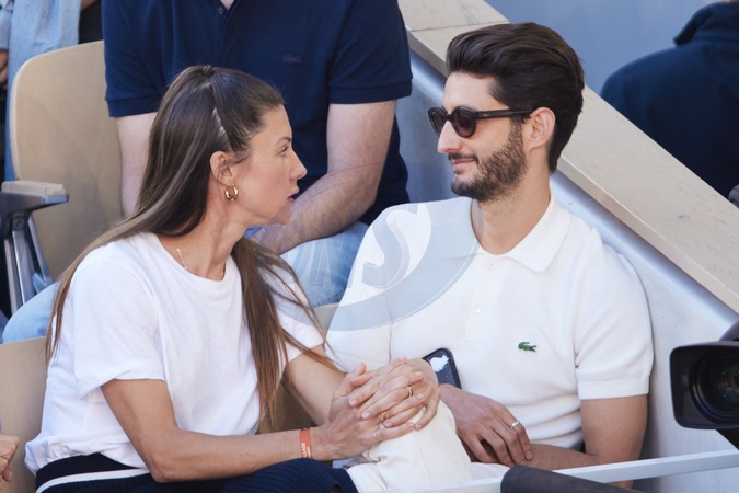 Pierre Niney et sa compagne Natasha Andrews - Célébrités dans les tribunes de la finale homme des Internationaux de France de tennis de Roland Garros 2024 à Paris le 9 juin 2024. © Jacovides-Moreau/Bestimage Celebrities in the stands of the men's final of the French Open tennis tournament at Roland Garros 2024 in Paris on June 9, 2024