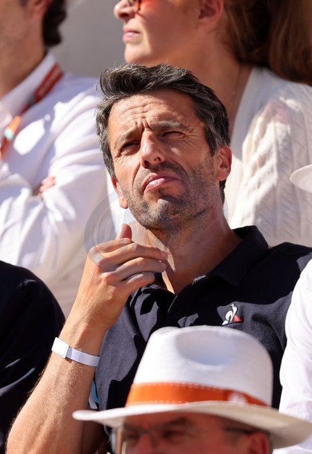 Tony Estanguet - Célébrités dans les tribunes de la finale homme des Internationaux de France de tennis de Roland Garros 2024 à Paris le 9 juin 2024. © Jacovides-Moreau/Bestimage Celebrities in the stands of the men's final of the French Open tennis tournament at Roland Garros 2024 in Paris on June 9, 2024