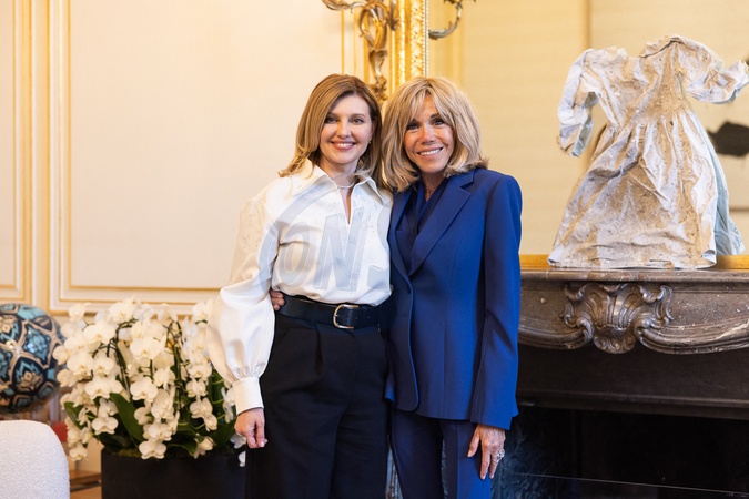 Ukraińska Pierwsza Dama Olena Zełenska i Francuska Pierwsza Dama Brigitte Macron w Pałacu Prezydenckim Elizejskim w Paryżu