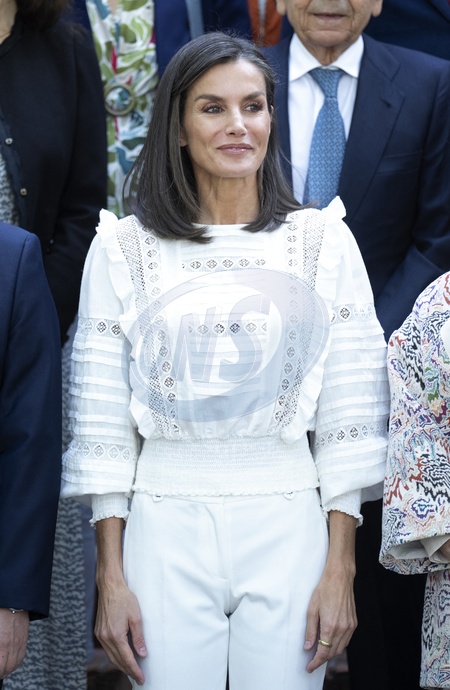 La reine Letizia préside la réunion du conseil d'administration de la Residencia de Estudiantes à Madrid, le 12 juin 2024. Queen Letizia, wearing full white outfit, visits the tradicional Residencia de Estudiantes (Students Residence), Madrid. June 12th, 2024.