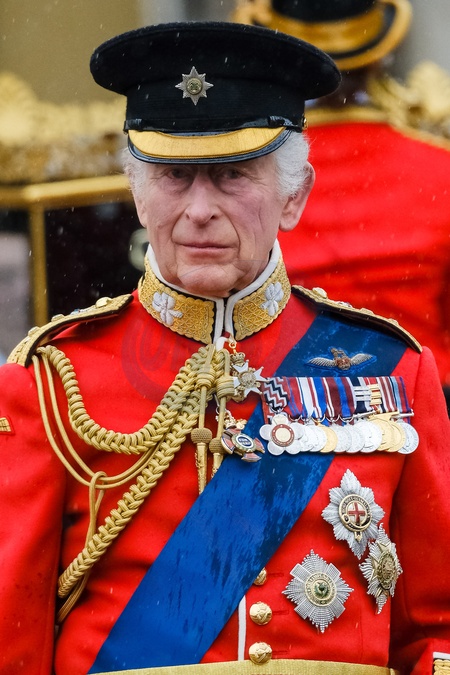 King Charles III at Trooping the Colour on Saturday 15 June 2024. Trooping the Colour is a traditional parade held to mark the British Sovereign's official birthday. This year the colours were trooped by The Irish Guards. ., Credit:Julie Edwards / Avalon