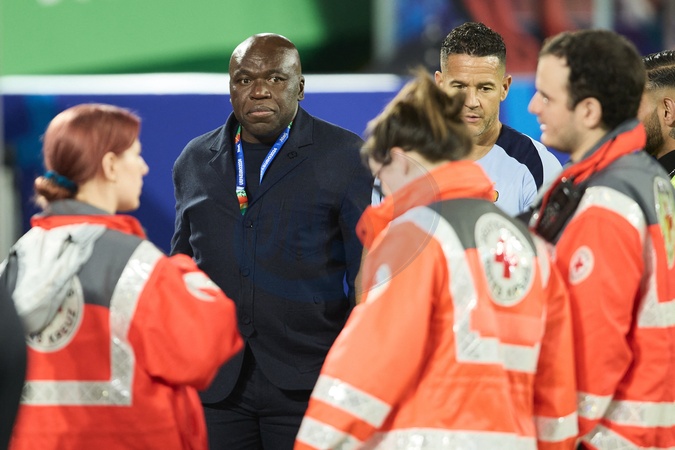 Wilfrid Mbappé très inquiet - Kylian Mbappé a été victime d'une fracture du nez lors du du match du groupe D de l'Euro 2024 entre l'équipe de France face à l'Autriche (1-0) à Dusseldorf en Allemagne le 17 jun 2024. Sorti avec le nez cassé après un choc avec Kevin Danso, Kylian Mbappé a passé des premiers examens qui laissent place à l'optimisme. L'intervention chirurgicale est écartée « dans l'immédiat », selon la FFF. © Cyril Moreau/Bestimage Kylian Mbappé suffered a broken nose during the Euro 2024 Group D match between France and Austria (1-0) in Dusseldorf, Germany on June 17, 2024. Having left with a broken nose after a collision with Kevin Danso, Kylian Mbappé underwent initial tests that give rise to optimism. Surgery has been ruled out "for the time being," according to the FFF.