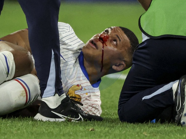 Kylian Mbappé a été victime d'une fracture du nez lors du du match du groupe D de l'Euro 2024 entre l'équipe de France face à l'Autriche (1-0) à Dusseldorf en Allemagne le 17 jun 2024. Sorti avec le nez cassé après un choc avec Kevin Danso, Kylian Mbappé a passé des premiers examens qui laissent place à l'optimisme. L'intervention chirurgicale est écartée « dans l'immédiat », selon la FFF. Kylian Mbappé suffered a broken nose during the Euro 2024 Group D match between France and Austria (1-0) in Dusseldorf, Germany on June 17, 2024. Having left with a broken nose after a collision with Kevin Danso, Kylian Mbappé underwent initial tests that give rise to optimism. Surgery has been ruled out "for the time being," according to the FFF.