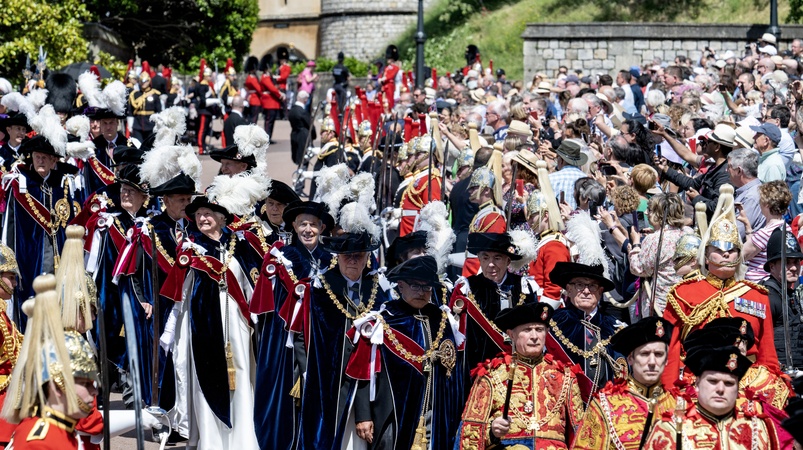 Members of the Knight Companion of the Most Noble Order of the Garter make their way to St George's Chapel in Winsor Castle ahead of the Garter Ceremony. picture David Dyson, Credit:David Dyson / Avalon