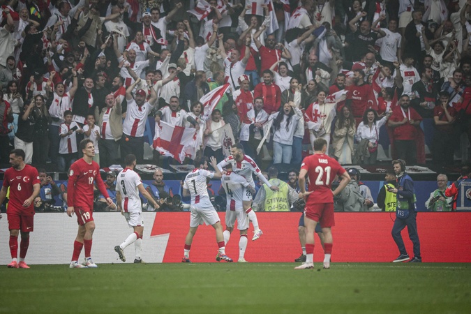 Joie des joueurs de Georgie apres le but de Georges Mikautadze 22 lors du match Turquie vs Georgie groupe F de l'Euro 2024 Euro 2024 match "Turkey - Georgia (3-1)" at BVB Stadion in Dortmund, June 18, 2024.