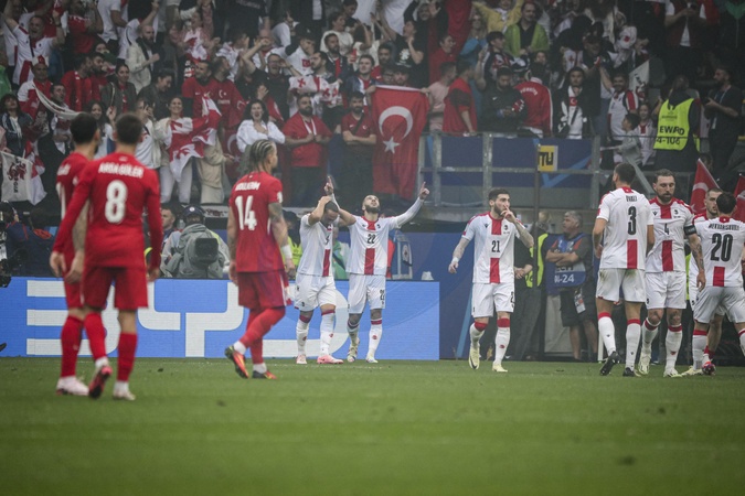 Joie des joueurs de Georgie apres le but de Georges Mikautadze 22 lors du match Turquie vs Georgie groupe F de l'Euro 2024 Euro 2024 match "Turkey - Georgia (3-1)" at BVB Stadion in Dortmund, June 18, 2024.