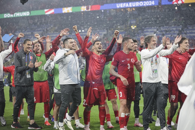 Joie des joueurs de Turquie apres sa victoire lors du match Turquie vs Georgie groupe F de l'Euro 2024 Euro 2024 match "Turkey - Georgia (3-1)" at BVB Stadion in Dortmund, June 18, 2024.