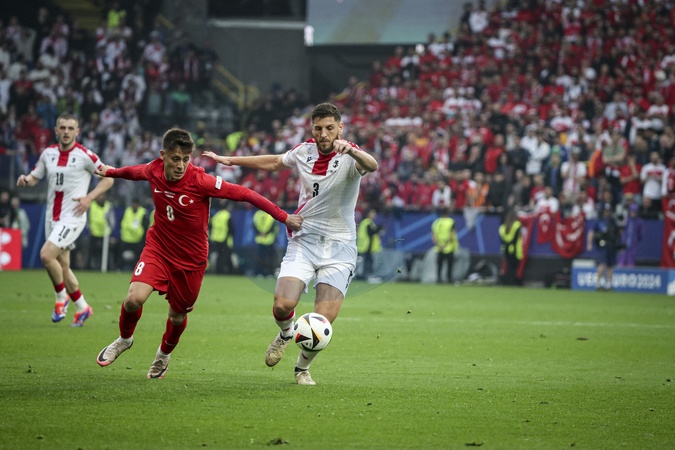 Arda Güler 8 et Lasha Dvali 3 Euro 2024 match "Turkey - Georgia (3-1)" at BVB Stadion in Dortmund, June 18, 2024.