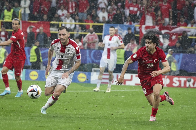 Anzor Mekvabishvili 20 et Zeki Çelik 2 lors du match Turquie vs Georgie groupe F de l'Euro 2024 Euro 2024 match "Turkey - Georgia (3-1)" at BVB Stadion in Dortmund, June 18, 2024.