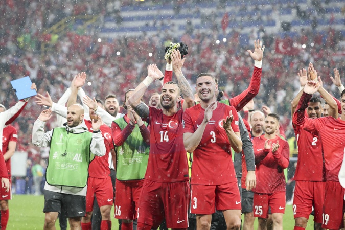 Joie des joueurs de Turquie apres lsa victoire Euro 2024 match "Turkey - Georgia (3-1)" at BVB Stadion in Dortmund, June 18, 2024.