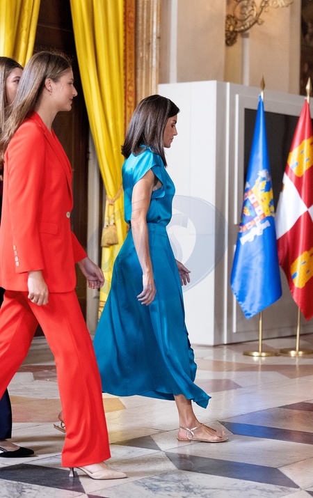 La princesse Leonor, La reine Letizia d'Espagne - La famille royale espagnole préside la cérémonie de décoration des ordres du mérite civil, à l'occasion du 10ème anniversaire du couronnement du roi d'Espagne au palais royal à Madrid, le 19 juin 2024. © Lala Yasky / Bestimage The Decoration Orders of Civil Merit Ceremony at The Royal Palace in occasion of King Felipe VI Coronation 10th Anniversary celebrations. Madrid. June 19th, 2024.