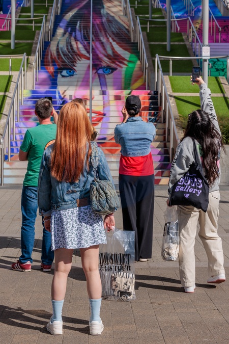 STRICTLY EMBARGOED UNTIL Thurs 20th June 6am.Wembley Park, London, UK. 19th June 2024.To mark Taylor Swift's record breaking eight shows at London's Wembley Stadium on her 'The Eras Tour', the 'Swiftie Steps' artwork has been unveiled., Credit:Photo by Amanda Rose / Avalon