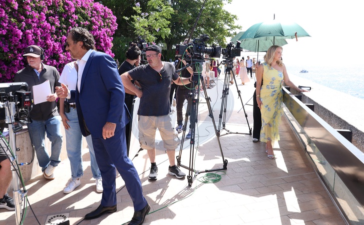 Katherine Kelly Lang i Thorsten Kaye kręcą odcinek amerykańskiego serialu „Miłość, chwała i piękno” (Odważni i piękni) w Monako, w ogrodach hotelu Fairmont