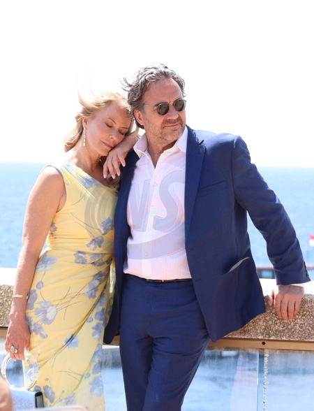 Exclusif - Katherine Kelly Lang et Thorsten Kaye en Tournage d'un épisode de la série Américaine "Amour, gloire et beauté" (The bold and the beautiful) à Monaco dans les jardins du Fairmont Hotel le 18 juin 2024. © Denis Guignebourg / Bestimage Exclusive - No web en Suisse / Belgique No USA / Italy rights. Katherine Kelly Lang and Thorsten Kaye filming an episode of the American series "The bold and the beautiful" in Monaco in the gardens of the Fairmont Hotel on 18 June 2024.
