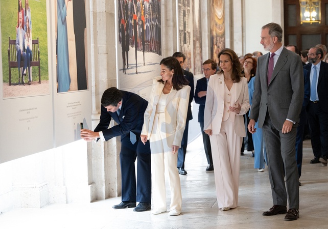 Le roi Felipe VI et la reine Letizia d’Espagne, inaugurent l'exposition "Felipe VI 2014 - 2024. Une décennie d'histoire de la Couronne d'Espagne" au Palais Royal à Madrid