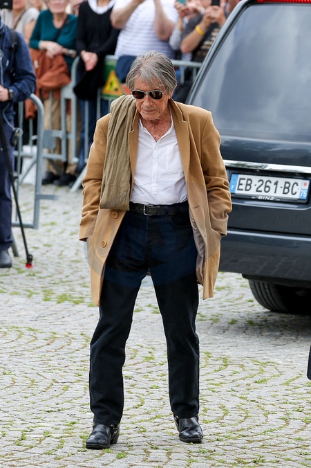 Jacques Dutronc et son fils Thomas Dutronc - Arrivées aux obsèques de l'auteure-compositrice-interprète et actrice française Françoise Hardy au crématorium du cimetière du Père-Lachaise à Paris, France, le 20 juin 2024. © Jacovides-Moreau/Bestimage Arrivals at the funeral of French singer-songwriter and actress Françoise Hardy at Père-Lachaise Cemetery in Paris, France, on June 20, 2024.
