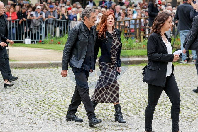 Julien Clerc et sa compagne Hélène Grémillon - Arrivées aux obsèques de l'auteure-compositrice-interprète et actrice française Françoise Hardy au crématorium du cimetière du Père-Lachaise à Paris, France, le 20 juin 2024. © Jacovides-Moreau/Bestimage Arrivals at the funeral of French singer-songwriter and actress Françoise Hardy at Père-Lachaise Cemetery in Paris, France, on June 20, 2024.