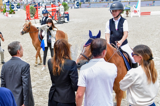 Giulia Sarkozy participe à l'épreuve Kids Cup L’Envol lors de la 10ème édition du "Longines Paris Eiffel Jumping" à la Plaine de Jeux de Bagatelle à Paris