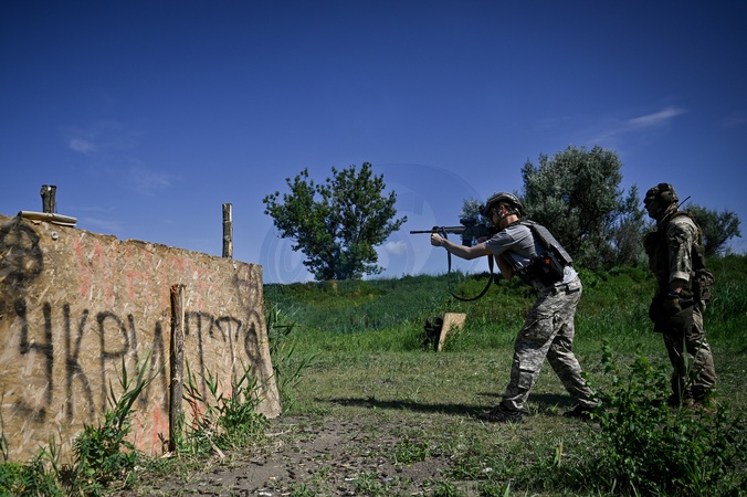 ZAPORIZHZHIA REGION, UKRAINE - JUNE 18, 2024 - A combat squad of a reconnaissance unit of the 128th separate mountain assault brigade of the Zakarpattia region is seen before the start of fire training, Zaporizhzhia region, eastern Ukraine, Credit:Dmytro Smolienko / Avalon