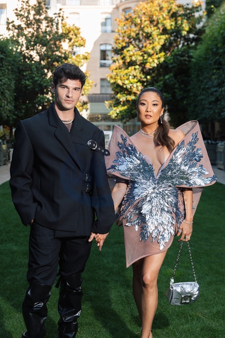 Paul Forman et sa compagne Ashley Park Lady actrice de Emily in Paris au cocktail Vogue World dans les jardins du palace Ritz Paris en amont du défilé de mode Vogue World Paris Haute-Couture automne-hiver 2024/2025 lors de la Fashion Week de Paris, France, le 24 juin 2024. © Tiziano Da Silva/Bestimage Vogue World Cocktail in the gardens of the Ritz Paris palace ahead of the Vogue World Paris Haute-Couture Fall-Winter 2024/2025 fashion show during Paris Fashion Week