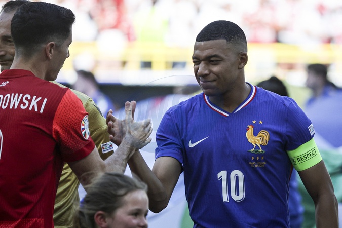 10 Mbappe Lottin Kylian MBAPPE Forward (FRA) et 9 Lewandowski Robert LEWANDOWSKI Forward (POL) - Match de Championnat d'Europe de football opposant la France à la Pologne à Dortmund, Allemagne, le 25 juin 2024. © Elyxandro Cegarra/panoramic/Bestimage UEFA Euro 2024 Group D football match between France and Poland at the BVB Stadion in Dortmund on June 25, 2024.