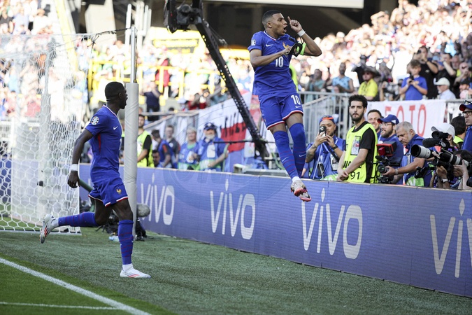 Joie des joueurs de France apres le but de 10 Mbappe Lottin Kylian MBAPPE Forward (FRA) - Match de Championnat d'Europe de football opposant la France à la Pologne à Dortmund, Allemagne, le 25 juin 2024. © Elyxandro Cegarra/panoramic/Bestimage UEFA Euro 2024 Group D football match between France and Poland at the BVB Stadion in Dortmund on June 25, 2024.