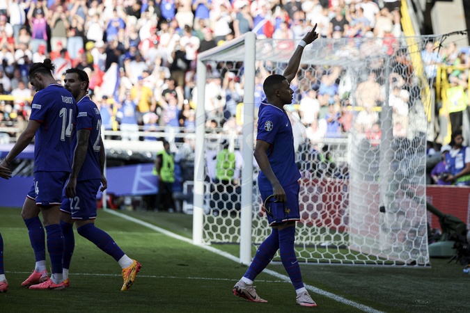 Joie des joueurs de France apres le but de 10 Mbappe Lottin Kylian MBAPPE Forward (FRA) - Match de Championnat d'Europe de football opposant la France à la Pologne à Dortmund, Allemagne, le 25 juin 2024. © Elyxandro Cegarra/panoramic/Bestimage UEFA Euro 2024 Group D football match between France and Poland at the BVB Stadion in Dortmund on June 25, 2024.